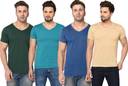 Pack of 4 Men Solid V Neck Cotton Blend Multicolor T-Shirt