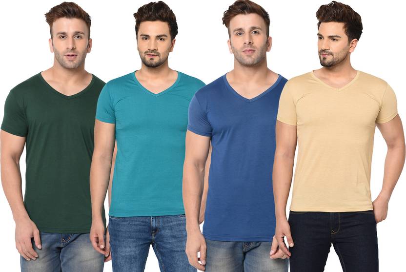 Adorbs Solid Men V Neck Multicolor T-Shirt