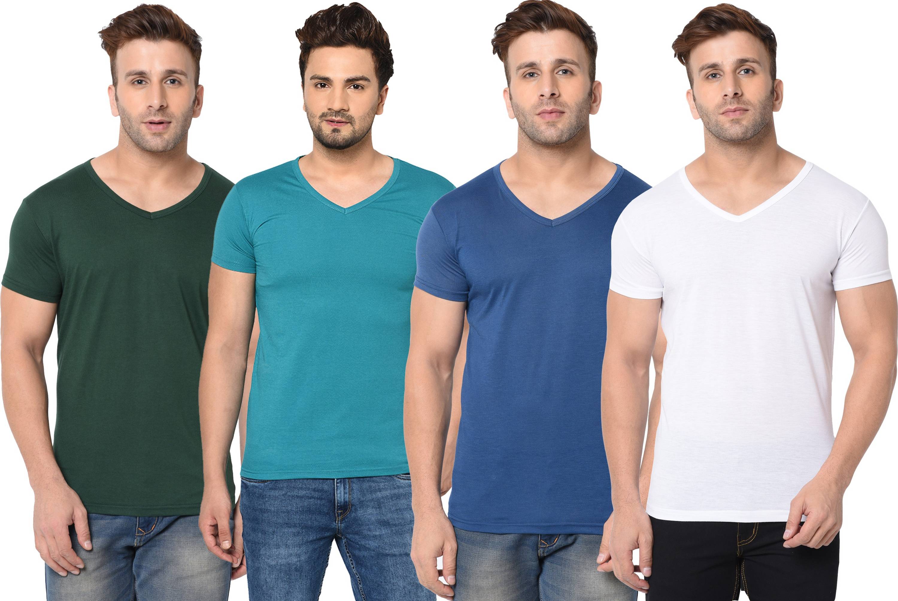 Pack of 4 Men Solid V Neck Cotton Blend Multicolor T-Shirt
