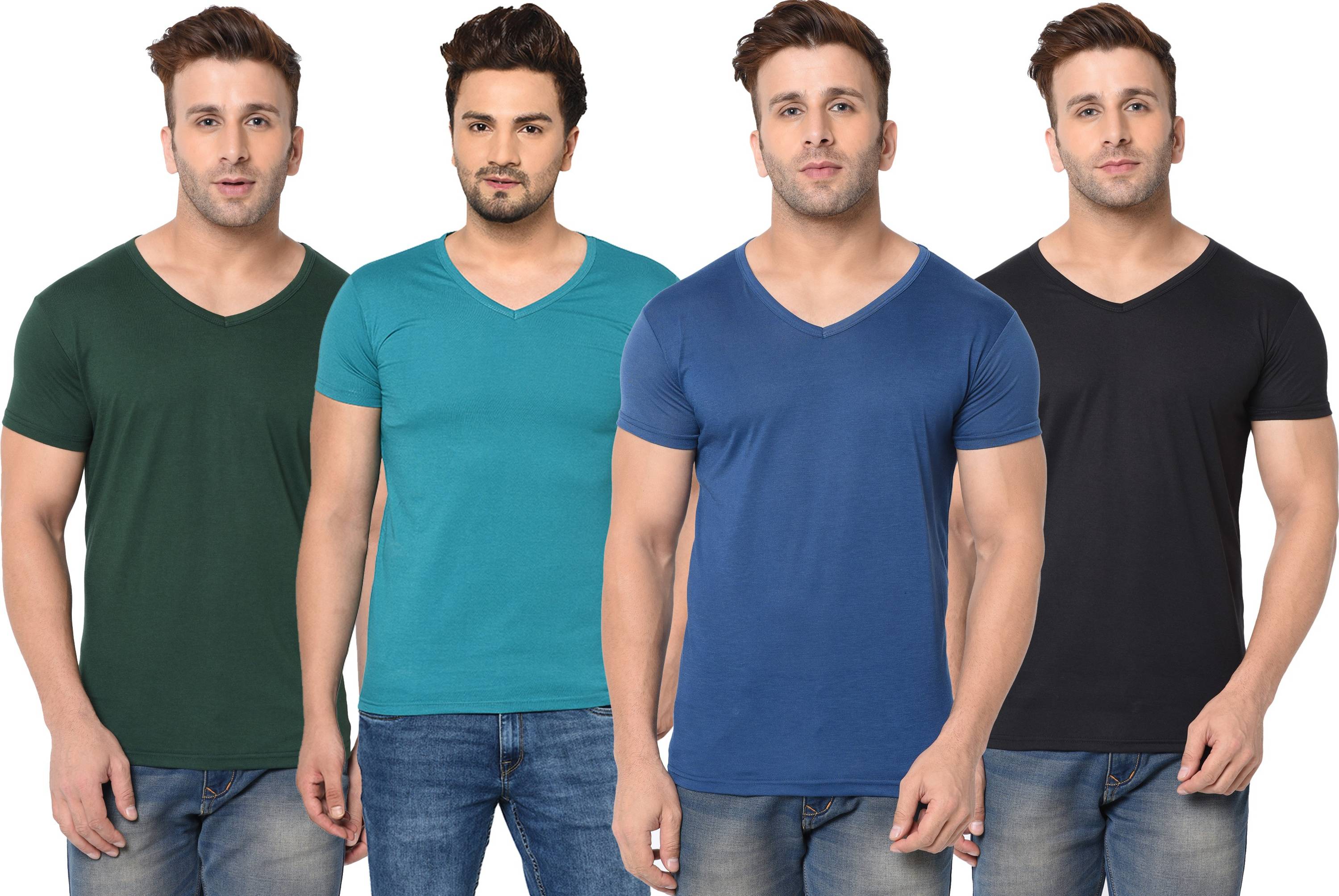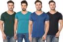 Pack of 4 Men Solid V Neck Cotton Blend Multicolor T-Shirt