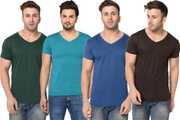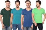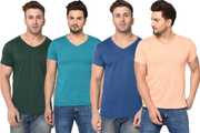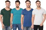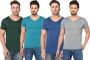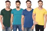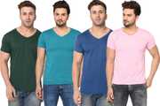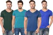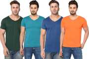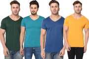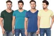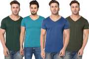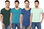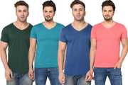 Pack of 4 Men Solid V Neck Cotton Blend Multicolor T-Shirt