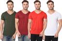 Pack of 4 Men Solid V Neck Cotton Blend Multicolor T-Shirt