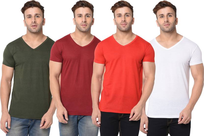 Adorbs Solid Men V Neck Multicolor T-Shirt