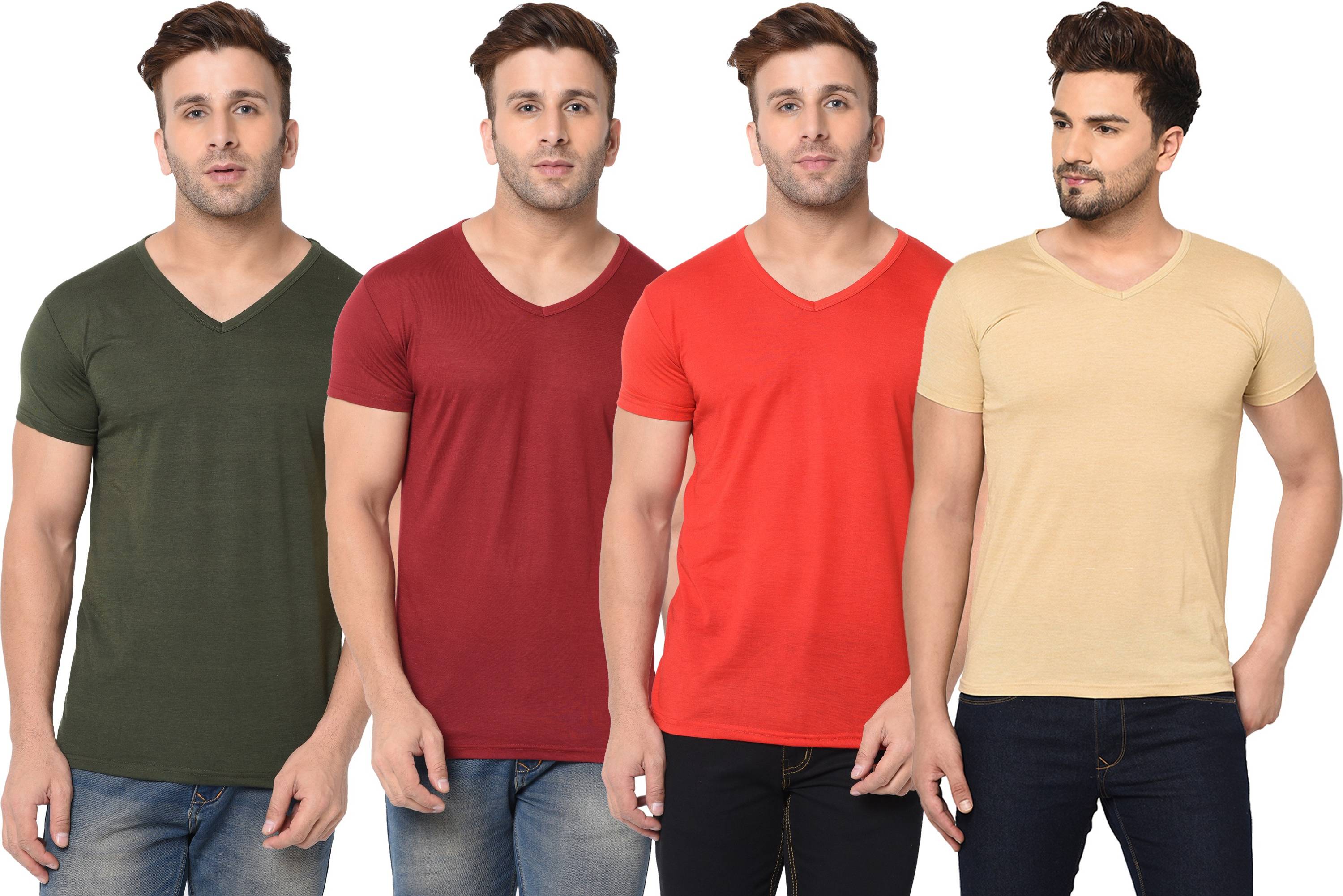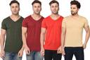 Pack of 4 Men Solid V Neck Cotton Blend Multicolor T-Shirt