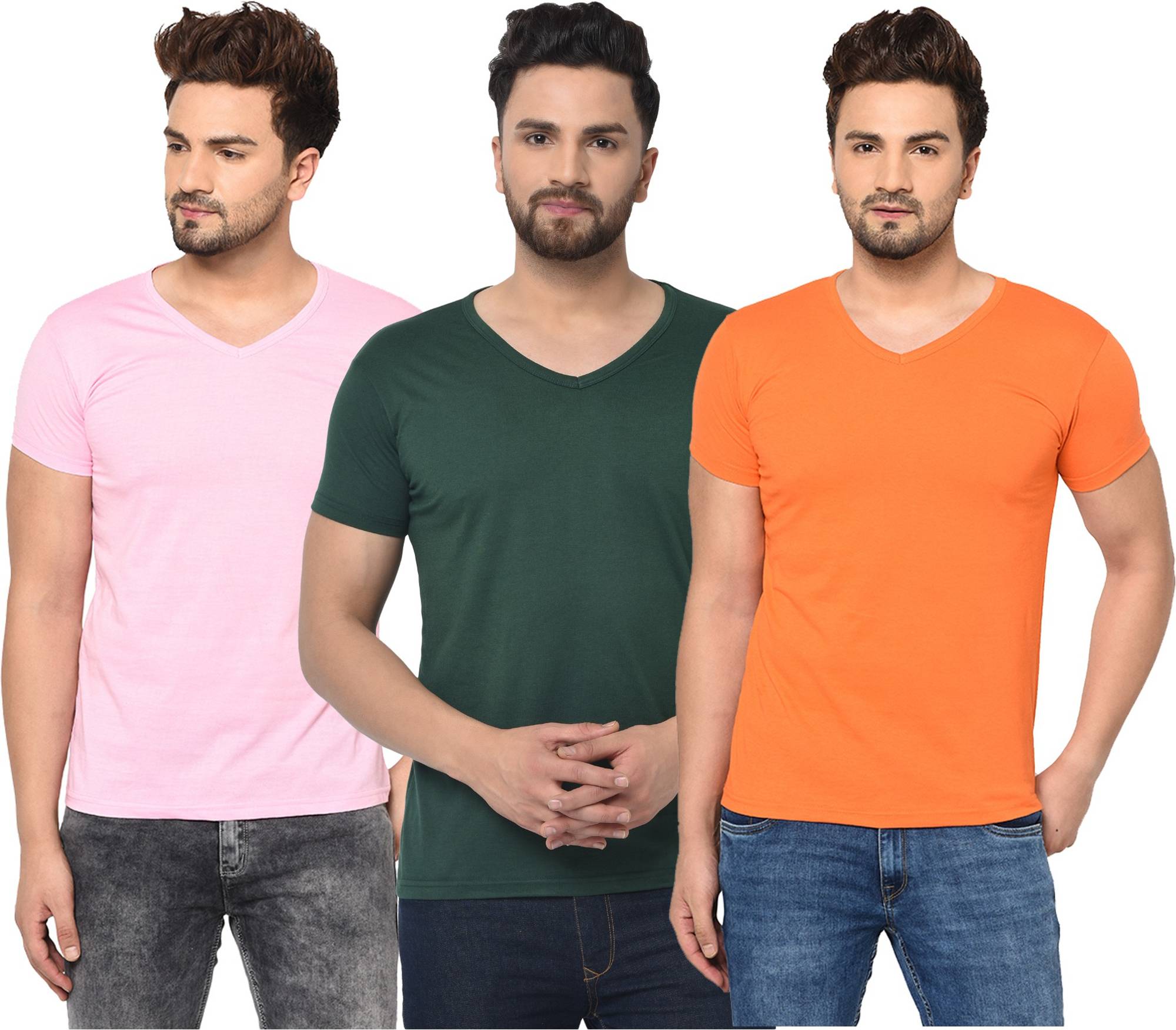 Consist of 3 V Neck Half Sleeve T-shirts Combo Pack