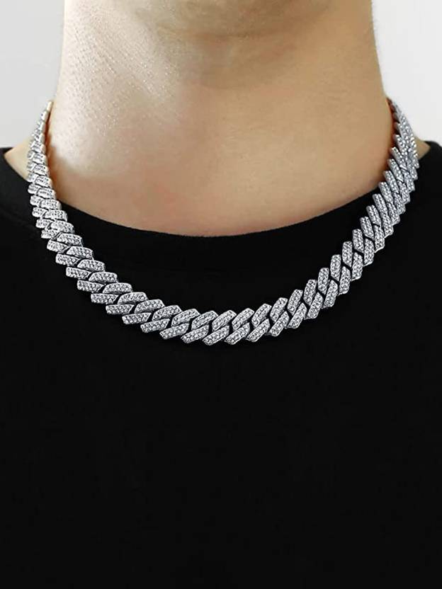 Adoxy Mc Stan Style Cuban Link Chain for Men,Women Chain Miami Necklace Iced Out Cubic Zirconia Sterling Silver Plated Stainless Steel Chain