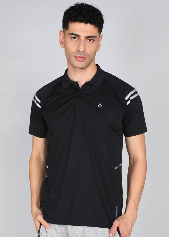 Adrenex Solid Men Polo Neck Black T-Shirt