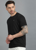 Adrenex Solid Men Round Neck Black T-Shirt