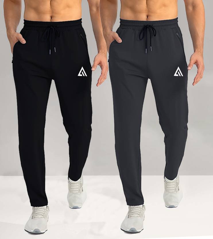Adrenex Solid, Printed Men Black, Grey Track Pants