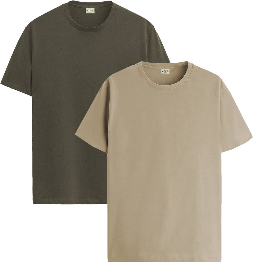 ADRO Pack of 2 Men Solid Crew Neck Cotton Blend Dark Green T-Shirt