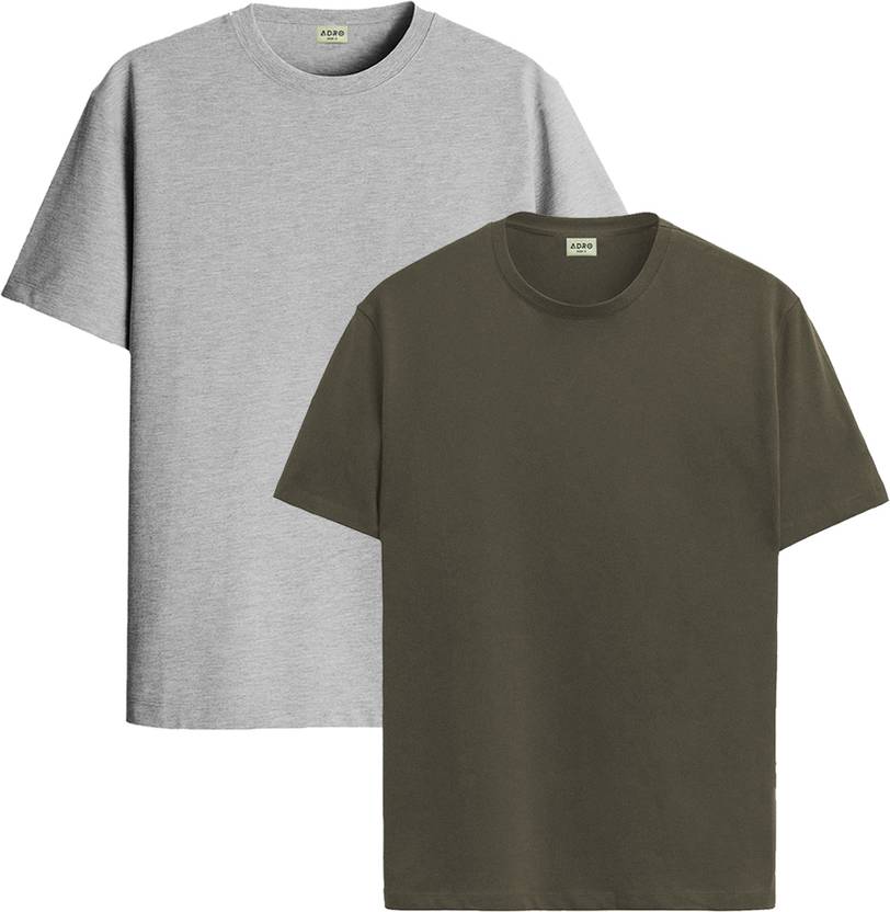 ADRO Pack of 2 Men Solid Crew Neck Cotton Blend Grey T-Shirt