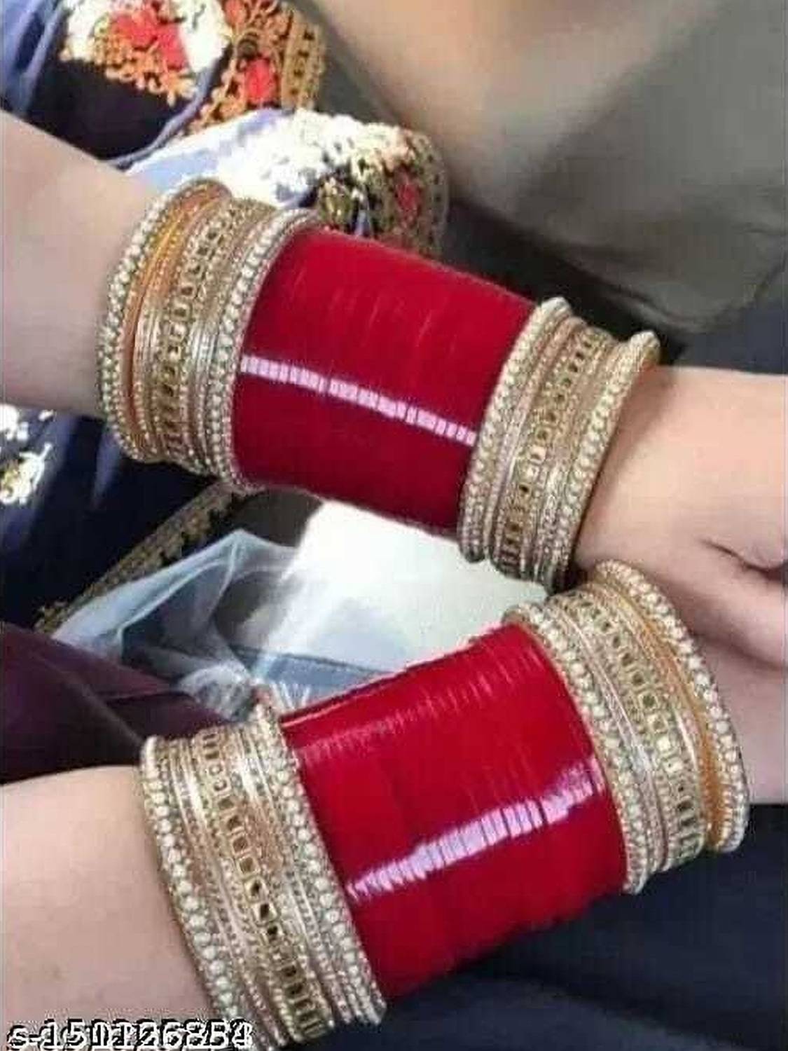 Crafted from high-quality alloy, these bridal chudas ensure durability and longevity. Moreover, the alloy base material offers a sturdy foundation for intricate designs and embellishments, making these chudas resistant to wear and tear. Thus, this ensures that the bride can cherish and pass down this beautiful set as a cherished heirloom.