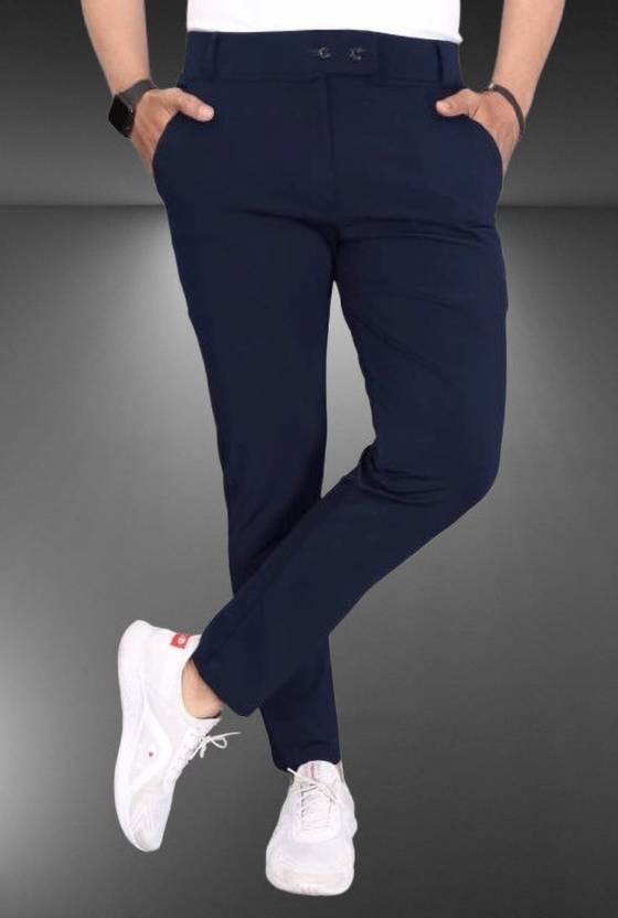Advikfashion Men Slim Fit Blue Cotton Blend Trousers
