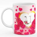 ADVR Alphabet letter "U" Printed on beautiful heart-shape roses & hearts design (BFA02100DG) Ceramic Coffee Mug (350 ml)