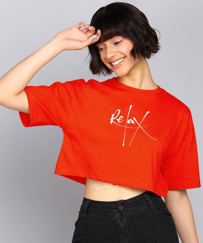 Adyavastram Typography Women Round Neck Orange T-Shirt