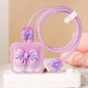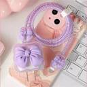 Arunstore iPhone Charger Case For 18W/20W | Cute Silicon Bow Knot | Sprial Cable Protector Cable Protector (Purple)