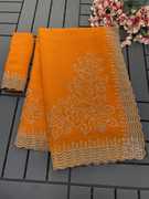 This Saree Made With Shimmer Fabric With 5.4 Meter Length. You Will Enhance Your Look.We Also Attached Lace Border in this Saree. Fabric Is best Quality,we Attached Blouse in this saree which is 0.8 meter.Blouse Is tottaly unstiched So you will stiched it according to your Size.You Also use this saree For Daily Wear At home And Partywear .Sometimes You Will use it For Festival Seasson.After Wearing this Saree You will Feel Something New So dont miss it.