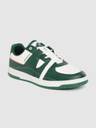 A pair of round toe green and white colourblocked sneakers ,has regular styling, Lace-ups detail Synthetic upper Cushioned footbed Textured and patterned outsole Warranty: 3 months Warranty provided by brand/manufacturer
