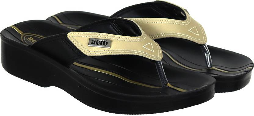 Aerosoft Women Flip Flops (Gold, Black , 3)