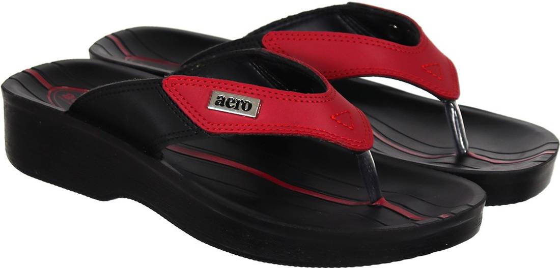 Aerosoft Women Flip Flops (Red, Black , 4)