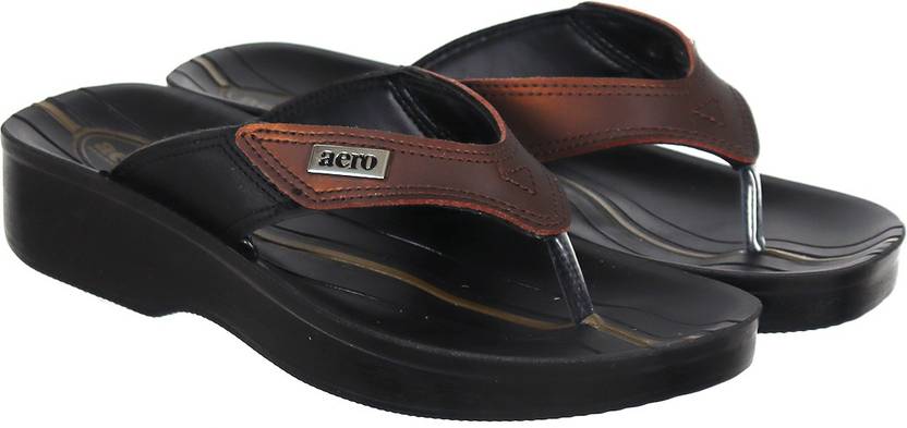 Aerosoft Women Flip Flops (Brown, Black , 3)