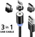 Fast charging: 3A(Type C) / 2.4A (Micro USB) / 2.1A (iOS), 360° Blind Insertion, Round plug design, 360 degree rotation, easy to contact the magnetic head, Micro USB / Type C / For iOS, 3 in 1 Multi Charging Cable: Includes Micro USB, IOS and Type C connector. Convenient for universal use, no need to carry many cables when you are at home, office, business or travel., 100% brand new and high quality., The Round 360° plug, made of high quality 360° Rotation blind magnetic adsorption., Support charging for most popular Android phone and tablet with Micro USB And type C , IOS