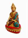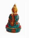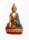 Aesthetic Decors Buddha Sitting Sakmuni With Stone Work Decorative Showpiece - 9.5 cm (Brass, Multicolor)