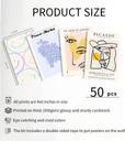 PREMIUM POST CARD: Including 50 sheet art themed post card are matte finish cardstock paper of 350gsm, not easy to be damaged or wrinkle. Clear print is not easy to fade even after long time.MINIMALISM ILLUSTRATION CARTOON POST CARD: Lovely cartoon illustration style post card, each post card is different pattern and element, including flower, leaves, rainbow, smile emoji, various lovely elements. Vibrant color design, blending seamlessly any interior style, bringing more pop-out color for room. If you are a room decor lover, you can not miss this collection.NICE BACKGROUND DECORATION: The Aesthetic decorative card can be any decoration for any craftpiece. You can use it as a wall decor, background sticker, bookmark, post card, gift card, photo display rack decor, etc.MORE CREATIVE USAGE: You can layout these art cards according the designed style or shape, then just use double-side tape or glue to fix it on the wall or other material. If you want to use these post card on photo display net ro rack, you can also clamp them on the rope with pins. And more creative way to use these beautiful and exquisite card is waiting for you to discover.EXQUISITE GIFT PACKING: Packed with delicated gifting box. This is also can be a gift for students, teens, friends, family, etc. Whether you buy it for room decor or other purpose, this beautiful art card collection will make your project more wonderful.