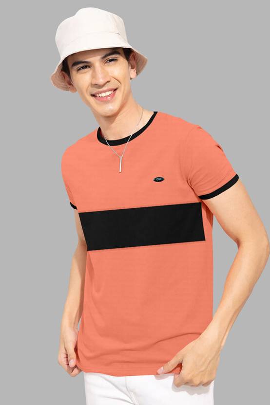 Aether Fashion Men Colorblock Polo Neck Pure Cotton Orange T-Shirt