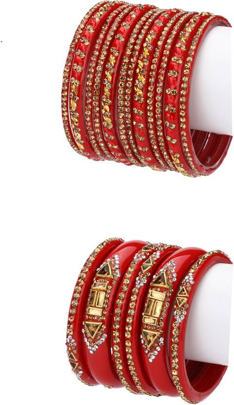 Afast Party Designer Glass Bangle Combo Of 2 Bangles Set Hand Ornamented With Colorful Stones