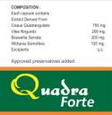 Quadra Forte Capsules is a natural remedy for Bone Health. It contain Cissus Quadrangularis which is Increase healing rate in fractures. Its Effective anti-inflammatory action to Stimulates osteoblastogenesis. It contain Vitex Nirgundo which helps to reduce pain associated with bone & Joints. It contain Boswellia Serrata to reduce pain & inflammation. It contain Withania Somnifera to reduce oxidative damage to joints. �DIRECTIONS- 1-2 capsules twice a day or as directed by physicians.