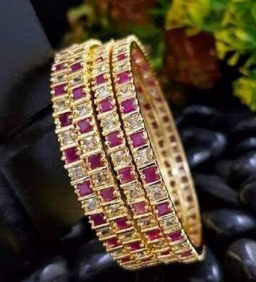 AFJ GOLD Copper Ruby Gold-plated Bangle Set (Pack of 4)