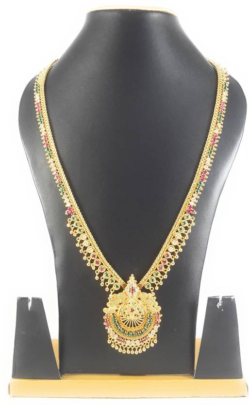 One Gram Micro Gold Plated Traditional Trendy Designer Stylish AD Stone Haram Long Necklace