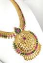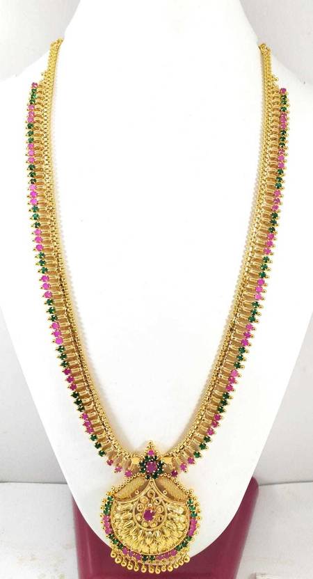 AFJ GOLD One Gram Micro Traditional Trendy Designer Stylish AD Stone Haram Long Emerald, Ruby Gold-plated Plated Copper Necklace