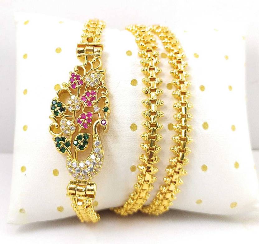 AFJ GOLD One Gram Gold Plated Traditional Trendy Stylish Mugappu Chain Emerald, Ruby Gold-plated Plated Copper Chain