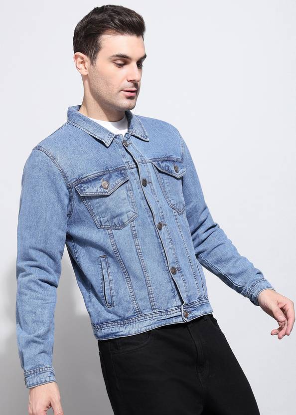 AFLASH Full Sleeve Solid Men Denim Jacket