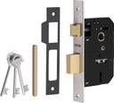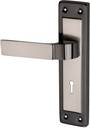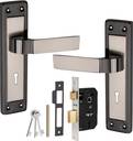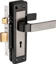 8 inches Mortise Iron Door Handle Set with Lock Body | Black Silver Finish | 3 Keys | 6 Lever 65 mm Double Turn Lock set for Door, (MH-345-KY-BG)
