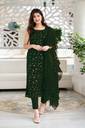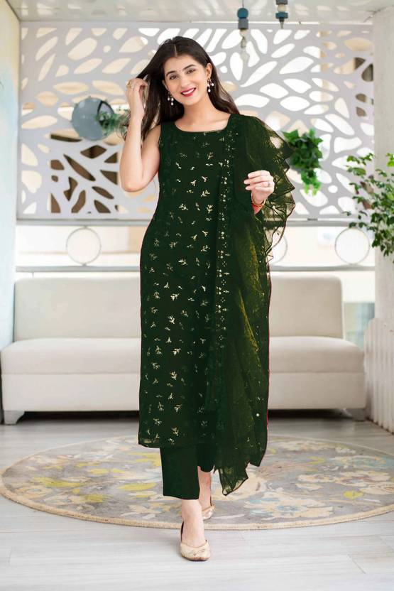 Top Color : Green|| Bottom Color : Green|| Duptta Color : Green|| Inner Color : Green||Top Fabric : Fox Georgette || Bottom Fabric : Creap || Duptta Fabric : Net || Inner Fabric : Creap || Top Length : 42 ( Inch) ||Top Width Size : 58 ( Inch) || Bottom Length : 2.2 MTR || Duptta Length : 2.25 MTR|| Inner Length :