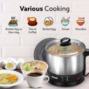 This electric kettle is available with various accessories, including an egg boiler rack, stainless steel grill, and plastic bowl to cater to your different kitchen needs.