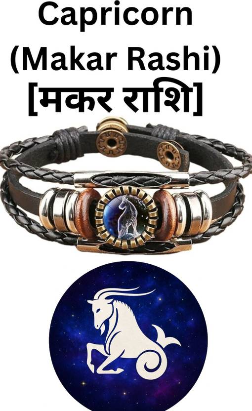 (Makar Rashi) Zodiac Bracelet for Men | Adjustable Leather Astrology Band