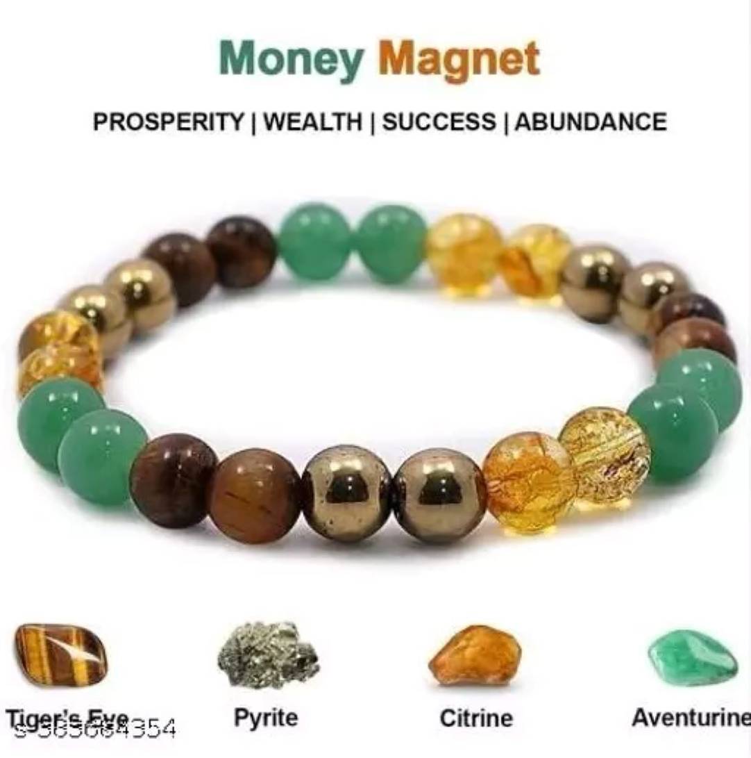 Each bead in this bracelet measures 8 mm, carefully crafted to ensure a comfortable and stylish fit for both men and women. The Money Magnet Bracelet not only serves as a powerful tool for attracting financial success but also as an elegant accessory that complements any outfit. Whether you're heading to a business meeting or a casual outing, this bracelet is your ally in manifesting wealth and maintaining energetic balance. Embrace the power of these natural stones and let the Money Magnet Bracelet be a constant reminder of your financial goals and aspirations.
