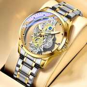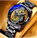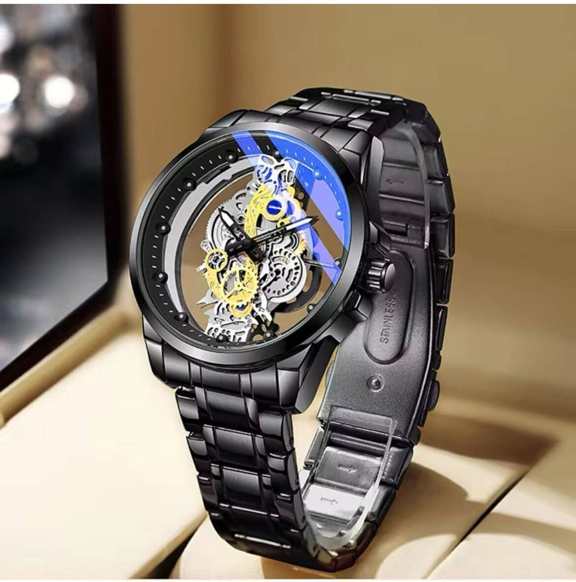 Automatic Mechanical Watch for Men β a perfect blend of bold design and premium craftsmanship. Featuring a transparent skeleton dial, this watch showcases the moving gears inside, making it a true statement timepiece.