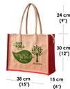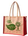 Jute Shopping Grocery Bag Printed with Green City Medium Size with Long Cotton Rope Handle Women Tote Bag and Lunch Bag