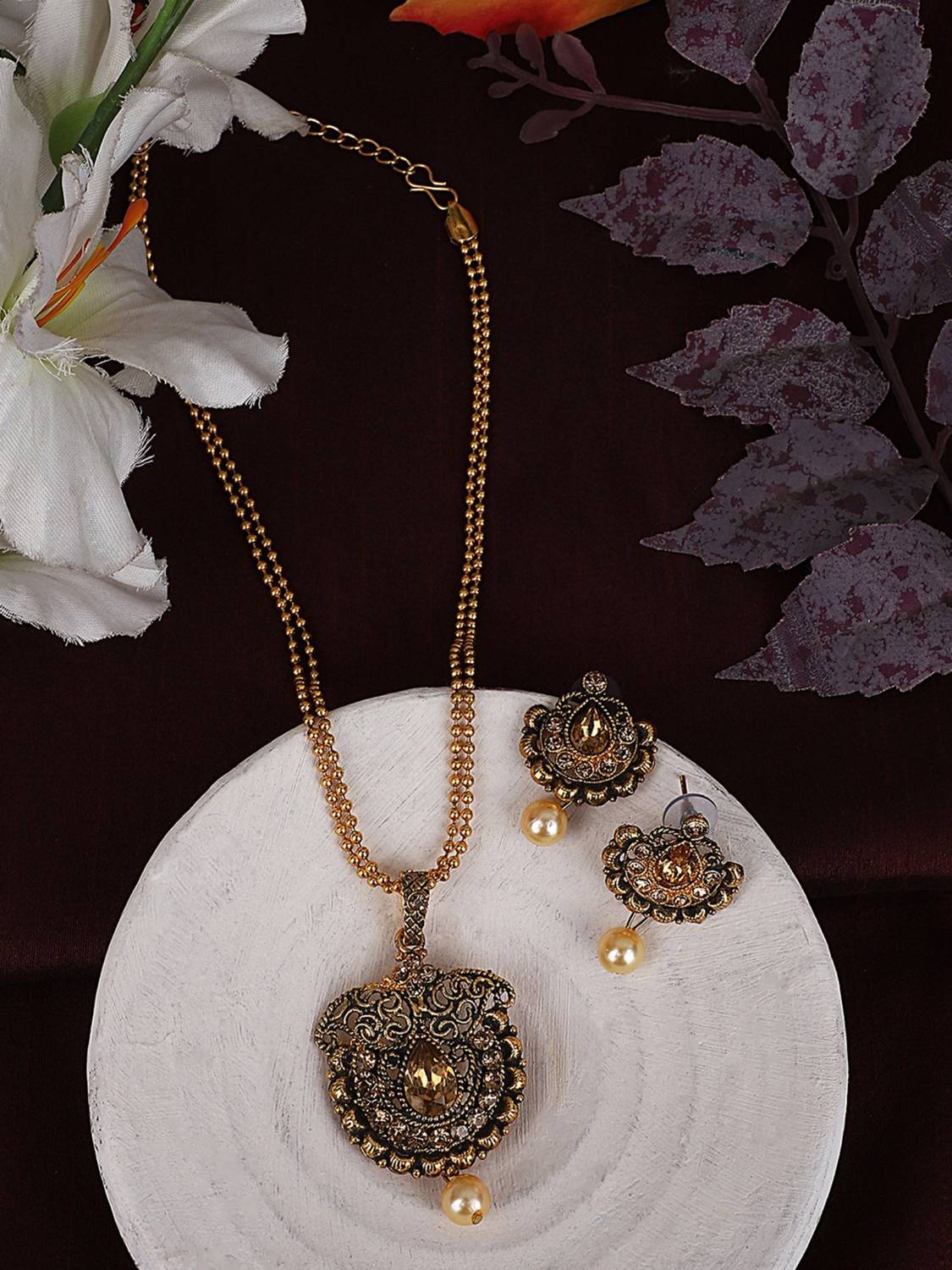 1 necklace and one pair earrings
