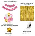 Happy Birthday Banner / Balloons for Party Decorations / Room Decoration (Happy Birthday) (Pink) / 2pc Golden Fringe Curtain (3x6 Feet) / 30 pcs Metallic Balloons Gold, Pink and White, 1 pcs Star Balloons, 1 pcs Glue Dots Roll