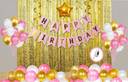 Pink Printed Happy birthday banner, 30 Pcs Metallic Balloons, 2 Pcs Gold Fringe Shiny Curtains, 1 Pcs Gold Star, 1 Pcs Strong Glue Dots Roll