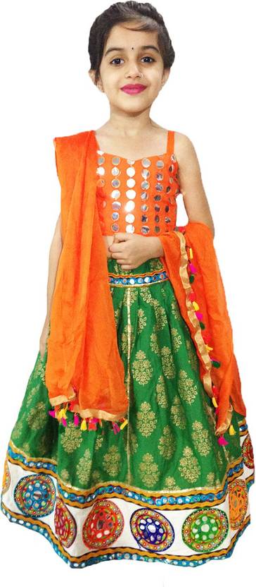 AGLARE Girls Lehenga Choli Ethnic Wear Embroidered Ghagra, Choli, Dupatta Set (Orange, Pack of 1)