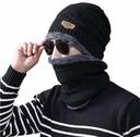 Winter Woolen Unisex Fur Fleece Lined Stylish Beanie Knitted Cap with Neck Warmer for Men and Women