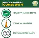 Complete Set with Accessories: A watering pipe for gardening alone isn't enough. That's why our set includes 2 pc clamps, and tap adapter, giving you everything needed for an easy leak proof setup .