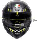 Aerodynamic shape, racing-developed front air vents and wind-tunnel engineered aero spoiler maximize performances while providing stability at higher speed. Panoramic anti-scratch visor allows a wider lateral and vertical field of vision for a total control of the environment. Comfort is no-compromise with Dry-Comfort soft removable interiors.